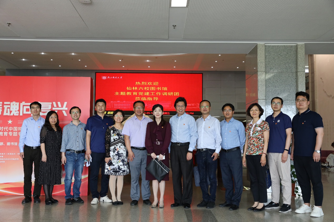 为深入推进学习贯彻习近平新时代中国特色社会主义思想主题教育,牢牢把握“学思想、强党性、重实践、建新功”的总要求,由南京师范大学图书馆党委联合驻仙林地区的南京大学图书馆、南京邮电大学图书馆、南京财经大学图书馆、南京中医药大学图书馆、南京工业职业技术大学图书馆等高校图书馆党委(党总支),围绕党建与业务融合发展、图书馆服务育人、学习型图书馆建设等主题,开展调研和交流活动。我馆党总支书记陆斌、副馆长陈夏参加调研交流会。