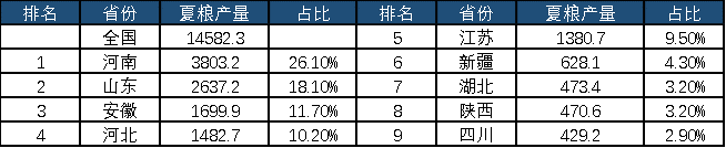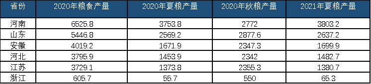 表2 2021年夏粮产量400万吨以上省份 单位:万吨